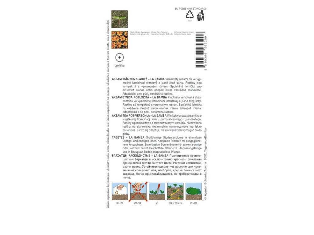 Bohatě kvetoucí letnička s aromatickými listy určená na záhonové výsadby, obruby, do okenních truhlíků a ozdobných nádob. Nenáročná na pěstování, bohatě kvetoucí po celý rok. Vysazováním aksamitníku kolem citlivých rostlin nebo do skleníků se účinně odpuzují hmyzí škůdci zeleniny. Kořeny obsahují látky potlačující půdní háďátka.