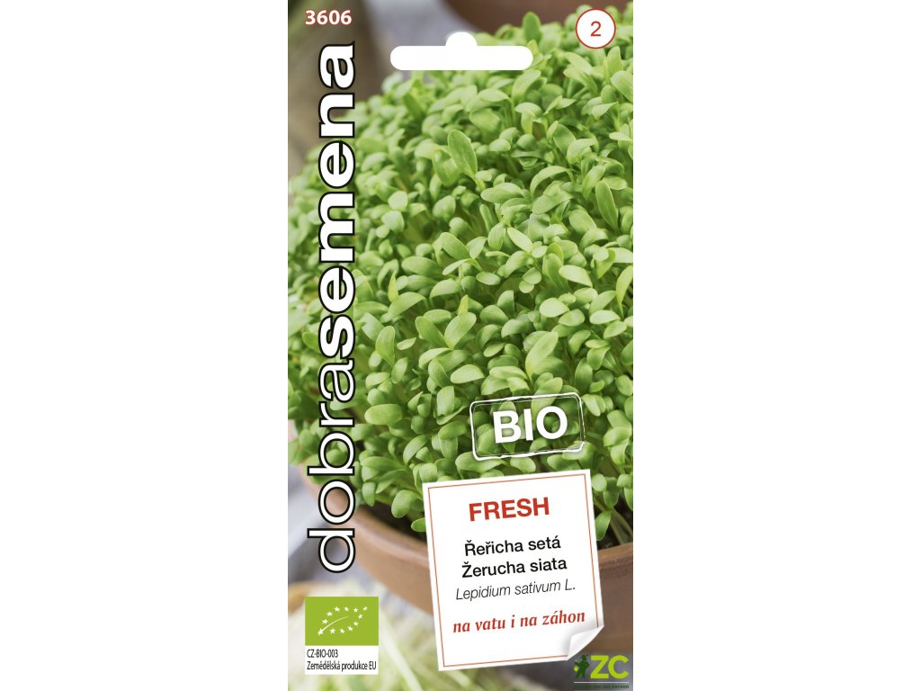 FRESH BIO - rychle rostoucí řeřicha pro celoroční pěstování na vatě. BIO kvalita osiva má u této plodiny extra význam, jelikož ji sklízíte již 10 - 14 dní po vysetí.