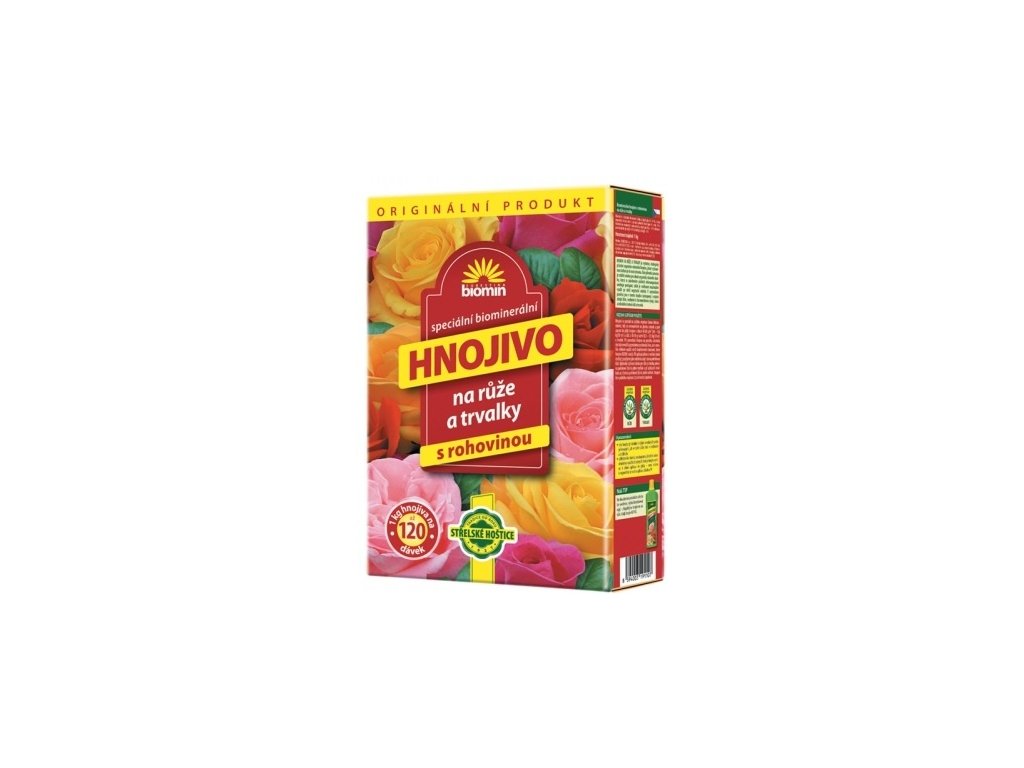 Biomin na růže a trvalky je vydatné, ekologicky příznivé organicko-minerální hnojivo, jehož významnou složkou je drcená rohovina. Tato přírodní surovina je zvláště ceněna pro obsah organicky vázaného dusíku, který se působením půdních mikroorganismů uvolňuje postupně, takže je rostlinami maximálně využit po delší vegetační obobí. V optimálním poměru jsou v tomto hnojivu zastoupeny i ostatní zdroje živin, nezbyté k harmonickému vývoji, růstu a bohatého kvetetení růží a trvalek.