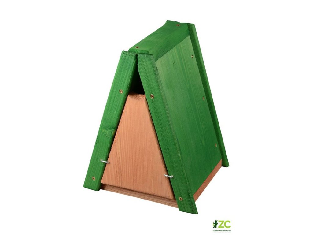 Sýkorník je určen zejména pro malé druhy sýkor - koňadru, modřinku, parukářku a úhelníčka. Budka je ze dřeva se zelenou střechou ze šindele a dřevěnými taškami. Má odnímatelný zadní díl pro snadné vyčištění budky. Rozměry: 24 x 18,5 x 16,5 cm.