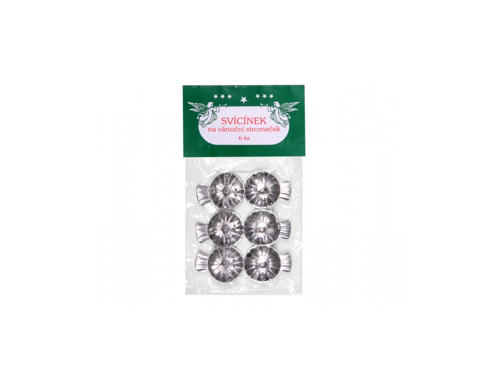 Držák svíček na stromečky stříbrný d3,8cm 6ks