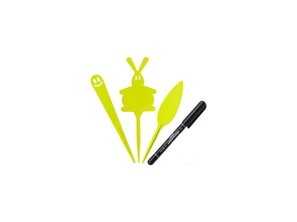 Jmenovky zapichovací k popisům rostlin a výsevů. Sada obsahuje 9 kusů jmenovek a lihový fix.