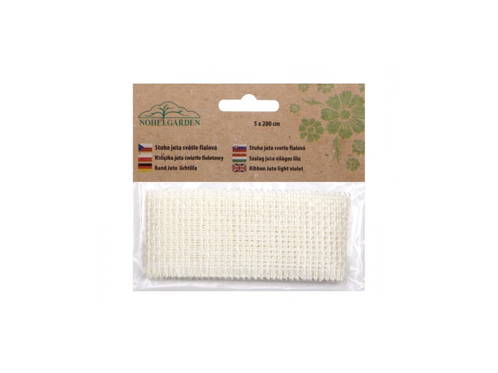 Jemně tkaná jutová barvená stuha pro dekoraci vázaných květin nebo pro aranžování sušených kytic. Barva: bílá. Šířka: 5 cm, délka stuhy: 2 m.