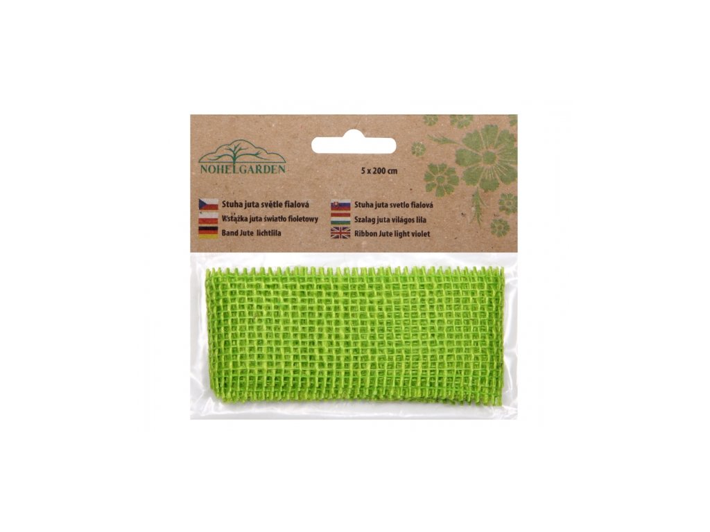 Jemně tkaná jutová barvená stuha pro dekoraci vázaných květin nebo pro aranžování sušených kytic. Barva: světle zelená. Šířka: 5 cm, délka stuhy: 2 m.