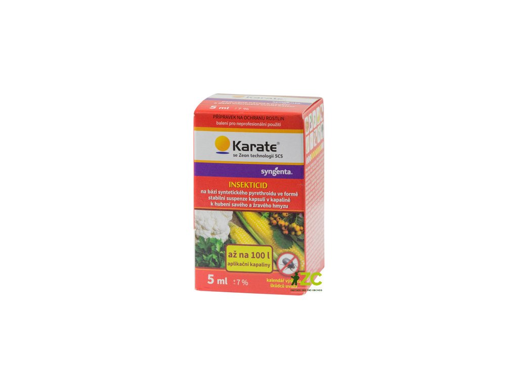 Karate je postřikový insekticidní přípravek ve formě syntetického pyrethroidu ve formě stabilní suspenze kapsulí v kapalině k hubení savého a žravého hmyzu v obilninách, hrachu, bobu, řepce olejce, hořčici bílé, bramboru, kukuřici na zrno, cukrovce, řepě krmné, vojtěšce, jeteli, jádrovinách, peckovinách, révě, lnu, jahodníku, čočce, brukvovité zelenině, rajčeti, okurce, paprice, česneku, mrkvi, petrželi, pastiňáku setém, fenyklu řapíkovém, kopru vonném, kmínu kořenném, okrasných rostlinách, lesních porostech a skladištních škůdců v prázdných skladech, silech a provozech.