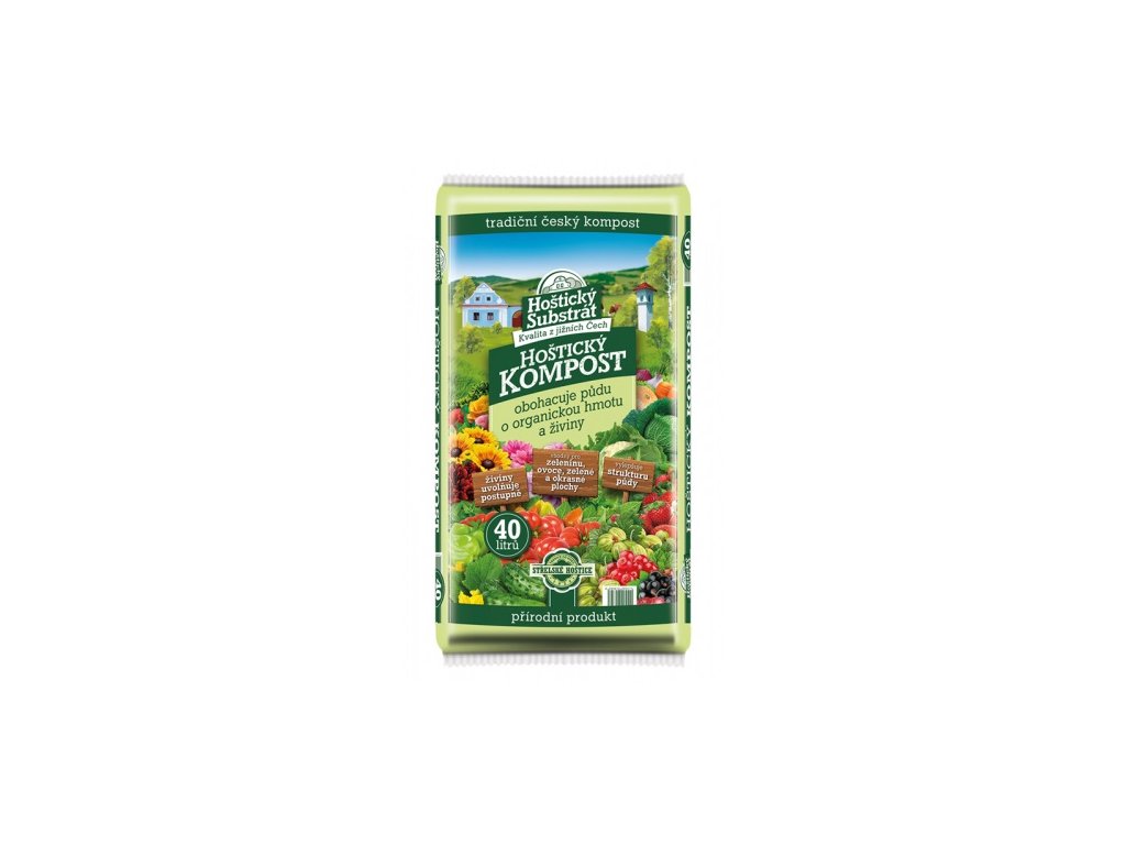 Hoštický kompost je organické hnojivo vyráběné procesem kompostování organických složek (tráva, listí, kůra…). Neobsahuje čistírenské kaly ani jiné rizikové materiály. Hoštický kompost dodává do půdy organickou hmotu, základní i stopové živiny. Zvyšuje obsah humusu v půdě, podporuje půdní mikroorganismy a zlepšuje fyzikálně-chemické vlastnosti půd. Výrazně omezuje vyplavování živin do spodních vod. Upravuje nežádoucí kyselé pH půdy (není vhodný pro kyselomilné rostliny). Používá se pro obohacení půdy o organickou hmotu a doplnění živin při zakládání zelinářských, zahradnických a ovocnářských pěstebních ploch.