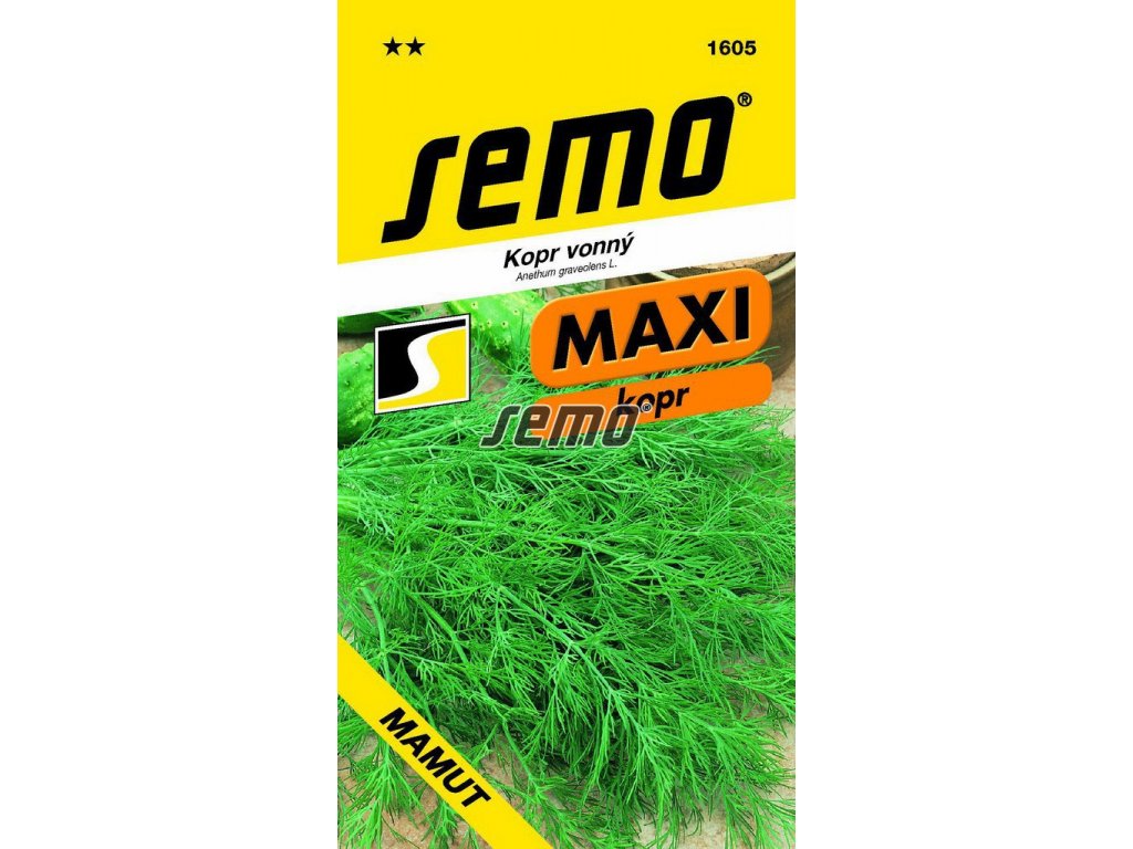 MAMUT SM (kód 1605) – kolekce MAXI – velmi vzrůstná odrůda kopru s vysokým výnosem zelené hmoty. List je tmavě zelený s výrazně kořeněnou vůní a chutí. Vhodný na sušení i mražení.