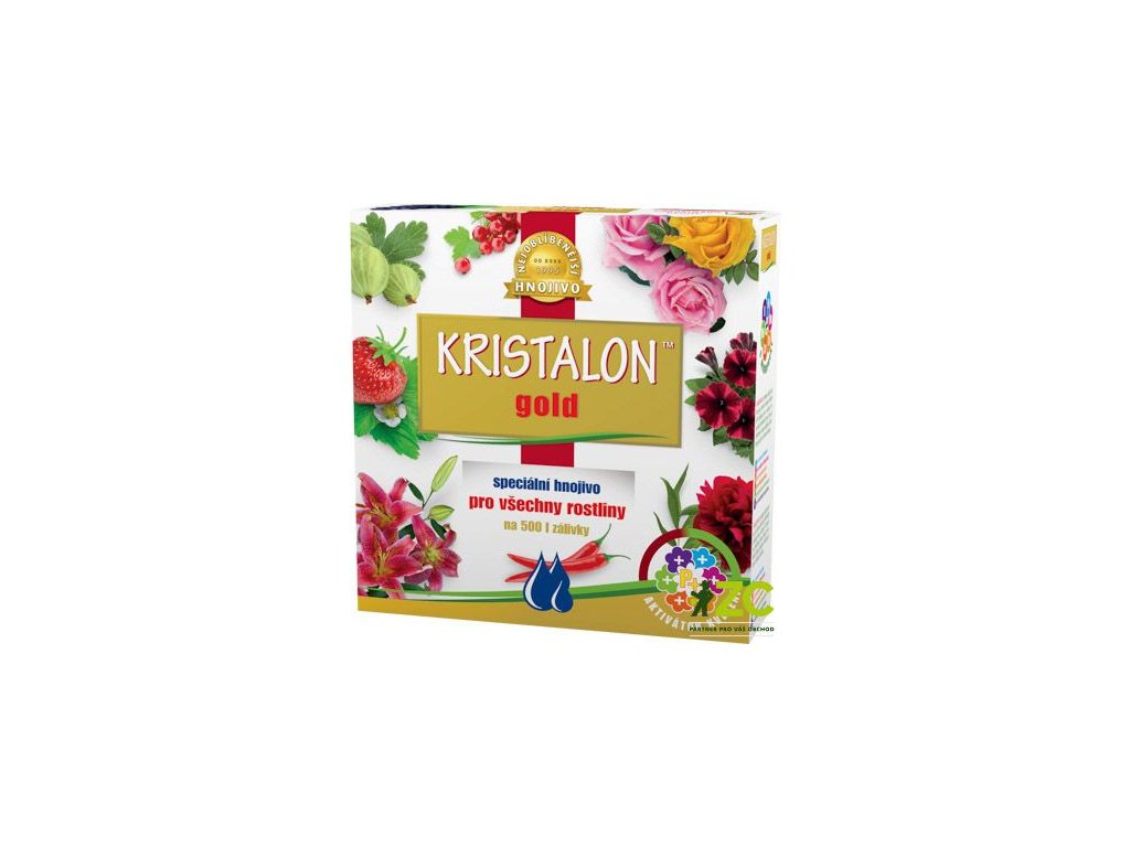 KRISTALON Gold je krystalické, vodorozpustné ES hnojivo s unikátním složením a aktivátorem kvetení. Udržuje rostliny stále v intenzívním růstu, zajišťuje lepší a zdravější kořenový systém i celkový stav rostlin, bohatší kvetení a více plodů. Kristalon Gold je univerzálně použitelný pro ovoce, zeleninu, všechny druhy pokojových i venkovních rostlin včetně ovocných stromů a keřů, vinnou révu. Zabraňuje žloutnutí listů.