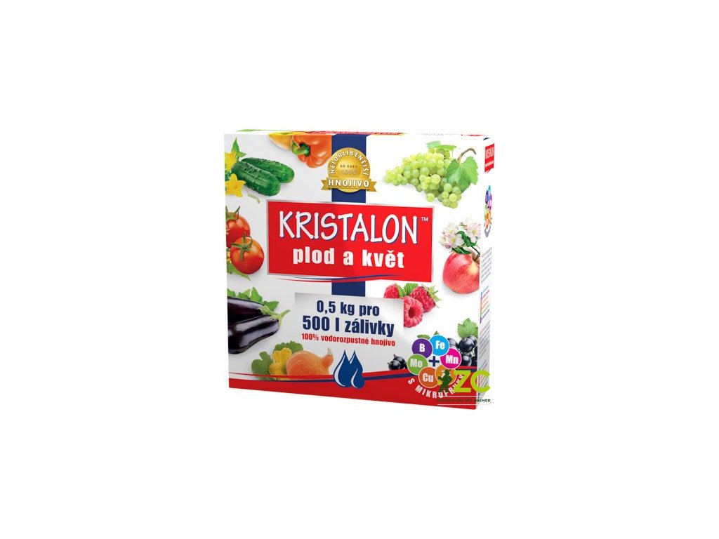 KRISTALON Plod a květ je krystalické ES hnojivo, vodorozpustné a určené pro rychlejší start produkčního období rostlin. Podporuje vyšší násadu a vybarvení květů a plodů. Kristalon je univerzálně použitelný pro ovoce, zeleninu, okrasné rostliny včetně balkonových, ovocné stromy a keře, vinnou révu. Zamezuje žloutnutí listů.