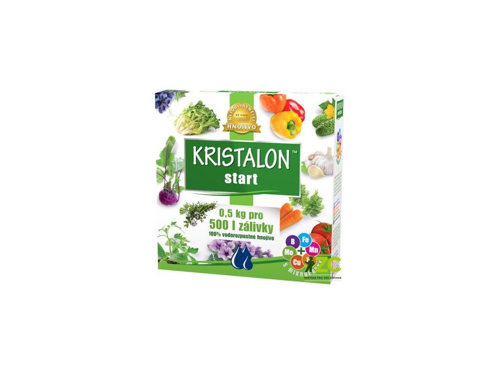 KRISTALON Start je krystalické ES hnojivo, vodorozpustné a určené pro rychlejší start v počátečním růstu a dále v produkčním období rostlin. Kristalon je univerzálně použitelný pro zeleninu, okrasné rostliny včetně balkonových, cibuloviny, drobné ovoce i ovocné stromy. Zabraňuje žloutnutí listů. Hnojivo je rychle účinné a způsobuje nárůst zelené hmoty.
