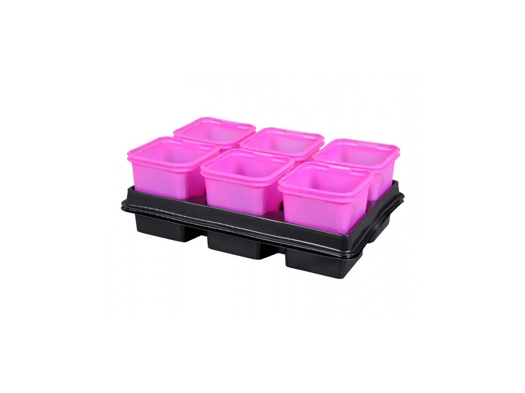 Květníky sadbové PINK s podmiskou vhodné pro výsev, předpěstování sadby nebo řízkování rostlin. Po výsevu či výsadbě rostlin květníky umístíme na světlé a teplé místo. Substrát, zejména v počátečním stádiu pěstování, udržujeme stále vlhký a zamezíme vysychání nebo přemokření. Složení: 2 x 6 ks květníků a 2 podmisky. Rozměr: 8 x 8 x 8 cm (květník).