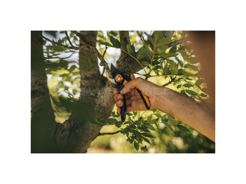 • Nůžky jsou určeny čistý hladký řez čerstvých tenčích i silnějších větví až do průměru 24 mm. Kalené a přesně broušené ocelové čepele zůstávají dlouho ostré. Vrchní pohyblivá čepel je potažená nepřilnavou vrstvou, která snižuje tření a chrání čepel před korozí. Tím je dosaženo plynulejších řezů a neulpívání kůry a pryskyřice na povrchu čepele pro maximální výkon. Mechanismus SmartFit umožňuje nastavení 2 šířek rozevření čepelí, díky tomu mají nůžky univerzální velikost pro malou, střední i velkou ruku. Zámek je ovladatelný pravou i levou rukou chrání čepele během přepravy a skladování.