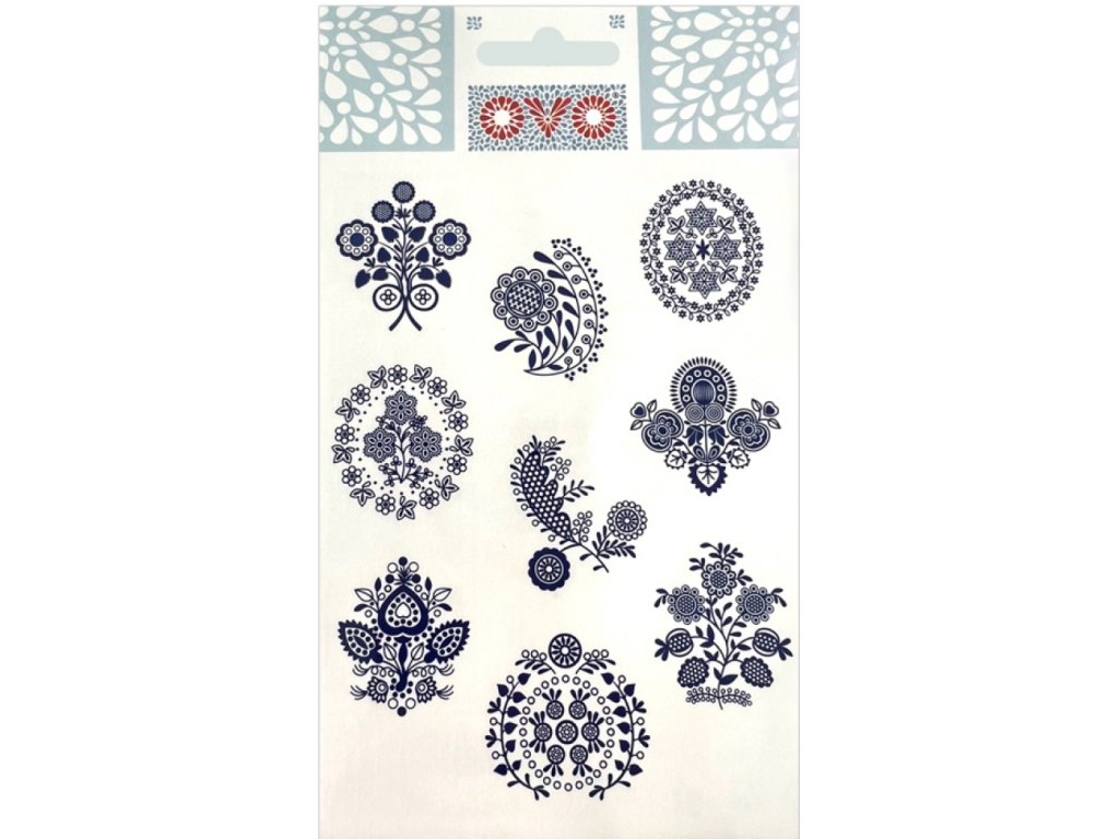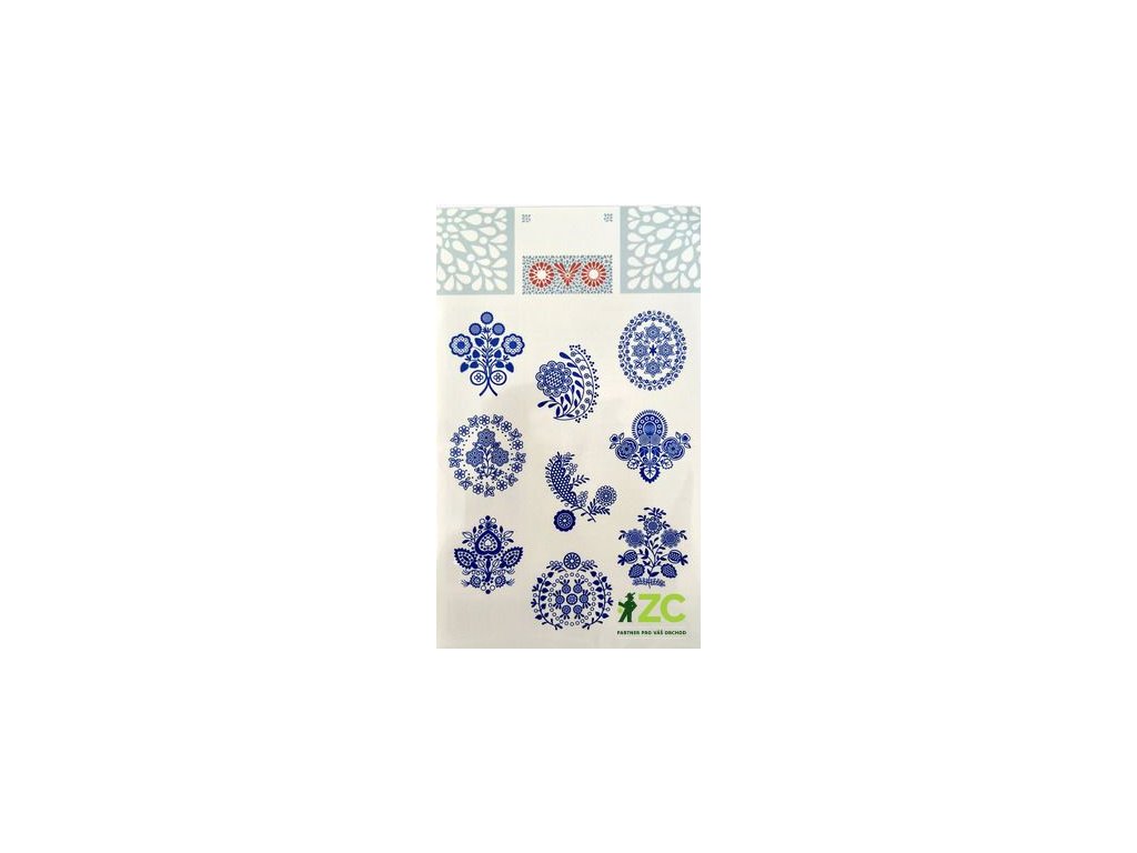 Obtisky pro klasické zdobení vajec v designu motivů modrotisku. Tradiční motivy a klasické použití s máčením ve vodě a přenesením motivu na vařené vejce. Balení obsahuje 9 obtisků. Barva: modrá.