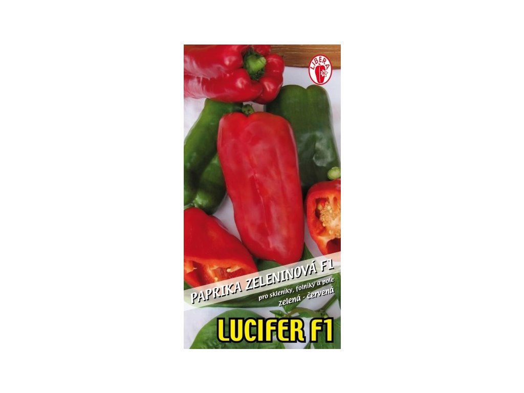 Paprika zeleninová - LUCIFER F1 – tato raná hybridní odrůda patřící k velkoplodým paprikám vyniká velkým množstvím sladkých, šťavnatých a masitých plodů, jejichž síla při správné výživě dosahuje 8-9 mm, velké lichoběžníkové plody dorůstají do délky 13-15 cm a šířky 8-9 cm. Jejich hmotnost je 300-350g. V konzumní zralosti tmavozelená barva přechází do červené. Pro svou sladkou chuť se výborně hodí hlavně pro přímý konzum, ale i ke konzervování. Rostliny dorůstají do výšky cca 120-150 cm pro množství a velkou tíhu plodů vyžadují oporu (nejlépe postupné vyvazování do „paprikového plotu“). Plody papriky obsahují velké množství vitamínů C, A, B1, B2 a antioxidanty. Osivo není mořeno.