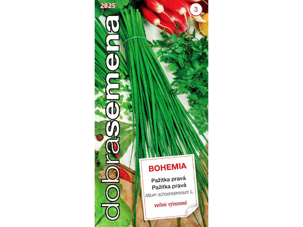 BOHEMIA - velmi výnosná pažitka, vhodná pro rychlení i pěstování na poli. Listy jsou pevnější, s výraznou chutí a vysokým obsahem vitaminu C. Vegetační doba do první sklizně je cca 110 dní, při rychlení 25 – 30 dní. Sklizeň lze několikrát opakovat. Odrůda velmi dobře přezimuje. Výsev na jaře nebo na podzim do sponu 20 x 10 cm