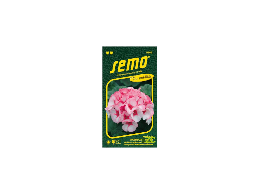 Růžové květy s výraznou hvězdicovitou kresbou, kompaktní, bohatě větvené a dlouho kvetoucí rostliny. Oblíbená trvalka pěstovaná jako letnička, výška 35cm. Rostliny s okrouhlým listem s charakteristickým proužkem. Uplatní se jako balkónová rostlina pro pěstování v nádobách, okenních truhlících i k výsadbě na záhony. Vyžaduje slunné stanoviště a provzdušněnou neutrální až zásaditou půdu. Předpěstování je časově náročné, trvá přibližně 4 měsíce. Vyséváme do propařené, strukturní zeminy a jemně zasypeme. Zajistíme doporučenou teplotu a po vyklíčení dostatek světla. Přepichujeme 3-4 týdny po výsevu. Následně rozsadíme jednotlivé rostliny do květináčů. V průběhu vegetace přihnojujeme a odstraňujeme uvadlé květy. K bohatému kvetení potřebují slunce a teplo. Přezimuje na světlém místě při teplotě min. 5-10°C