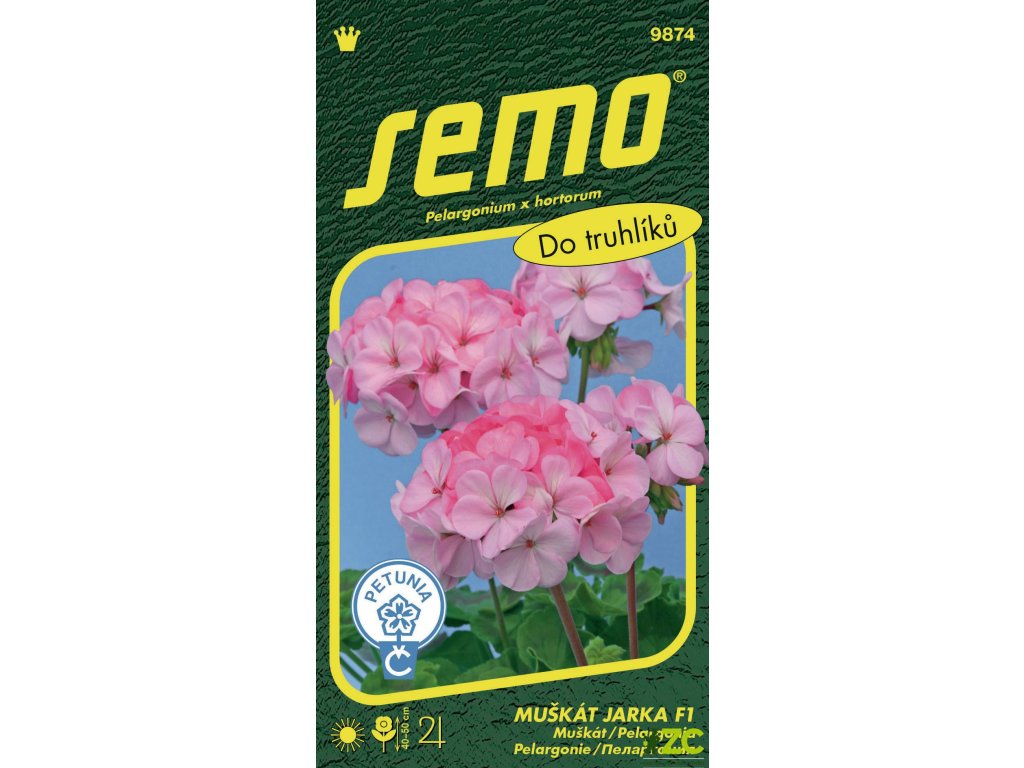 JARKA F1 (kód 9874) – světle růžová barva květů, listy jsou zelené. Rostliny mají silné a pevné stonky. Výška rostliny je 25 cm bez květenství (celkem 40–50 cm).