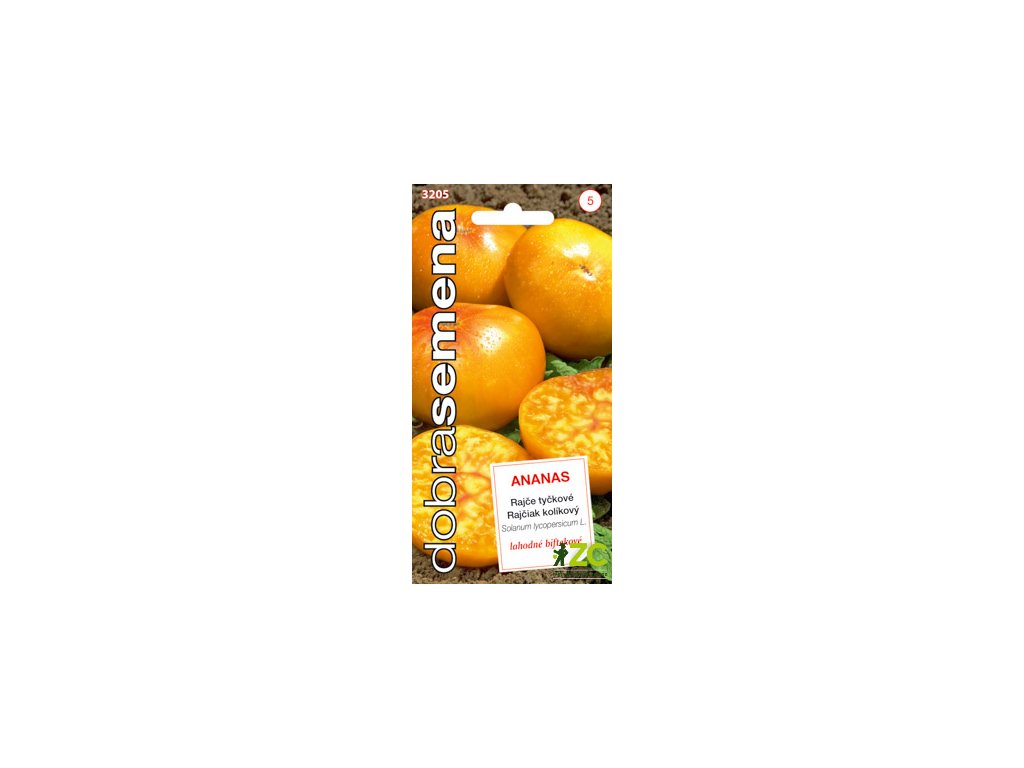 ANANAS - výjimečně chutné, velké biftekové rajče s plody dorůstajícími až 200 g. Plod je ploše kulovitý, oranžový, na průřezu vícekomorový. Vyniká lahodnou máslovou dužinou, její sytě oranžová barva má uprostřed růžovo červené mramorování.