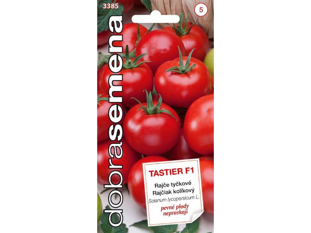 Lycopersicon esculentum Mill. / RajčiakPopis: TASTIER F1 - středně raný hybrid s pevnými, nepraskajícími, stejnoměrně vybarvenými plody. Kulovité plody jsou menší, koktejlového typu o hmotnosti 50 - 60 g, v počtu 8 až 10 na jednom vijanu. Odrůda je vhodná pro rychlení i na pole. Je rezistentní proti viru tabákové mozaiky, fusariu, cladosporiu a verticiliu