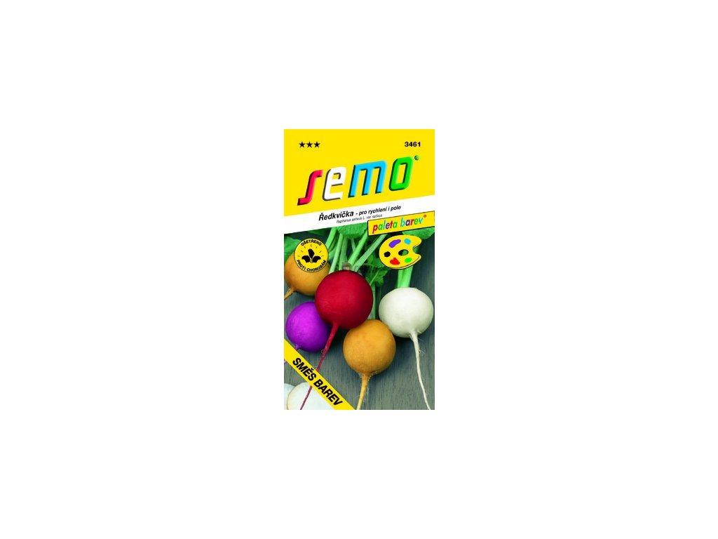 SMĚS BAREV - kolekce PALETA BAREV – směs barevných odrůd vhodných pro rychlení i pole. Osivo jednotlivých odrůd je v sáčku barevně odlišeno mořením.
