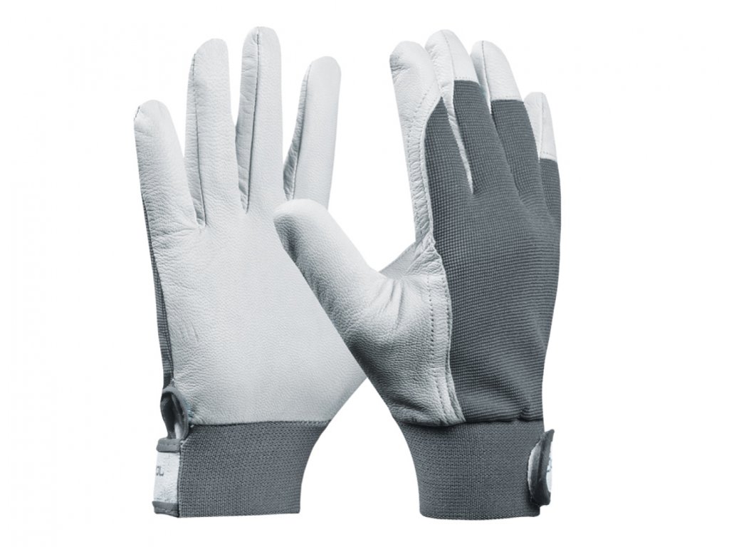 Pracovní rukavice vysoké kvality, vhodné pro práce stavební, lesnické, zahradnické, montážní a jiné. Extra měkká kůže, v kombinaci se strečovým spandexem na hřbetu ruky garantují extra pohodlí a ochranu rukou. S elastickou manžetou. Materiál: kozí kůže, polyester-spandex. Velikost: 9. Barva: šedá.
