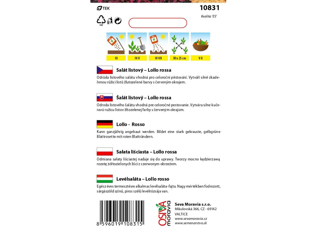 Salát listový LOLLO ROSSA 0,5g OSIVA MORAVIA