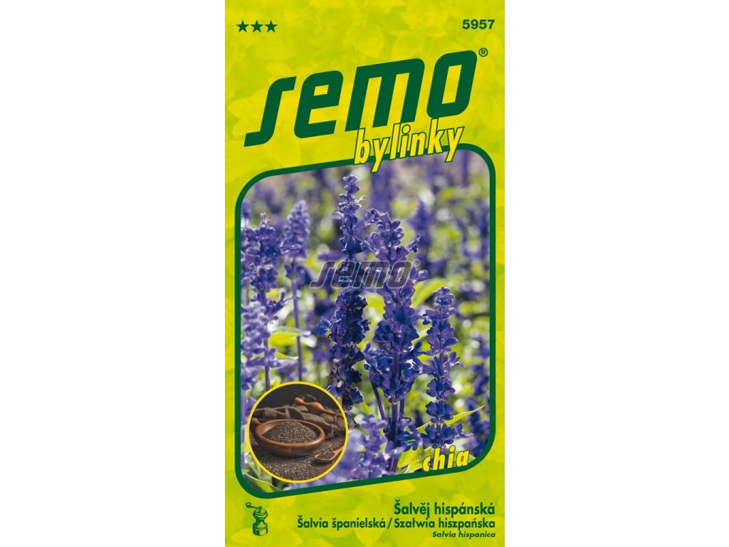 Šalvěj hispánská neboli CHIA pochází z oblastí Latinské Ameriky. Je to nejen krásná dekorativní rostlina, ale i rostlina s koncentrací síly a energie. Dosahuje výšky okolo 1 metru a kvete modrými až fialovými kvítky. Bylinku můžeme předpěstovat nebo vyset přímo na stanoviště po polovině května. Vyžaduje plné slunce a propustnou půdu. Šalvěj hispánská je pěstovaná jako okrasná rostlina, zejména však pro svá zdravá semínka. Chia semínka v sobě totiž koncentrují vysoké množství zdraví prospěšných látek, např. omega-3 mastné kyseliny, bílkoviny, vlákninu, antioxidanty a vápník. Díky svým výživovým vlastnostem jsou tato drobná semínka zařazena mezi superpotraviny.