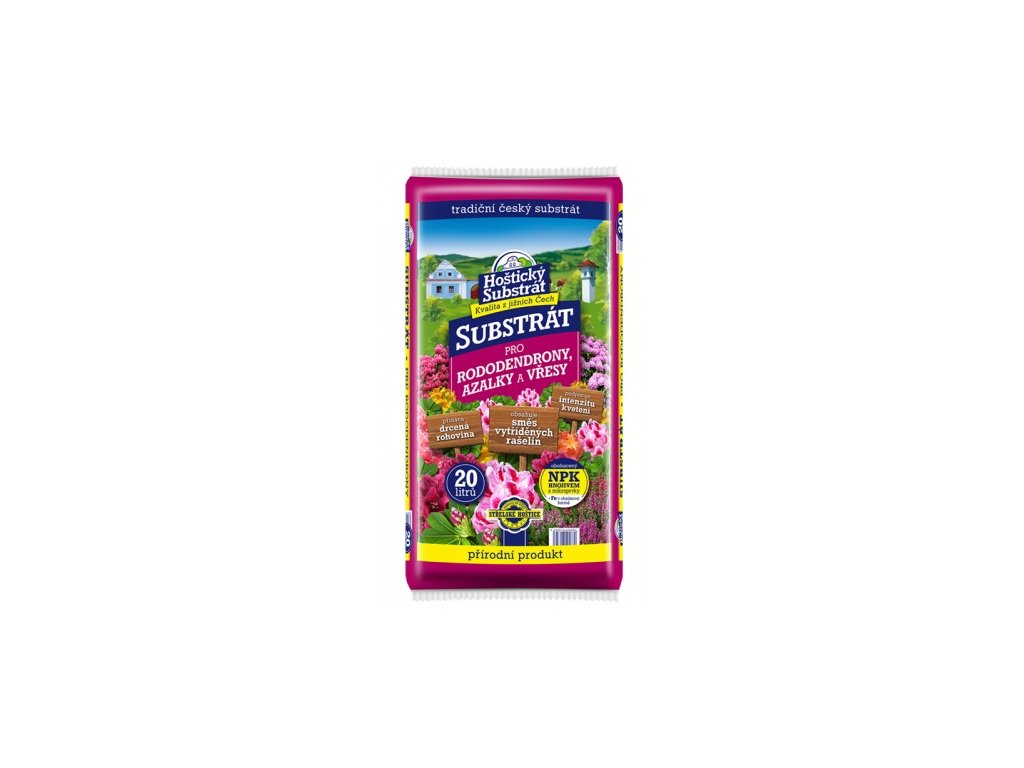 Hoštický substrát je určen pro rododendrony, azalky a vřesy. Je vyroben ze směsi vytříděné světlé a tmavé rašeliny s vhodnou kyselostí. K základnímu vyhnojení substrátu je použito minerální vícesložkového hnojivo s mikroprvky. Substrát je dále obohacen o fosforečné hnojivo a železo v chelátové formě. Svojí strukturou a optimálním poměrem jednotlivých typů rašelin je zajištěna rovnováha mezi vodní a vzdušnou kapacitou substrátu. Zvýšený obsah fosforu podporuje intenzitu kvetení i bohatost a velikost květu. Přídavek drcené rohoviny zajištuje dlouhodobé a pozvolné uvolňování dusíku i dalších živin, které jsou přítomny ve stopovém množství. Balení: 20 l.