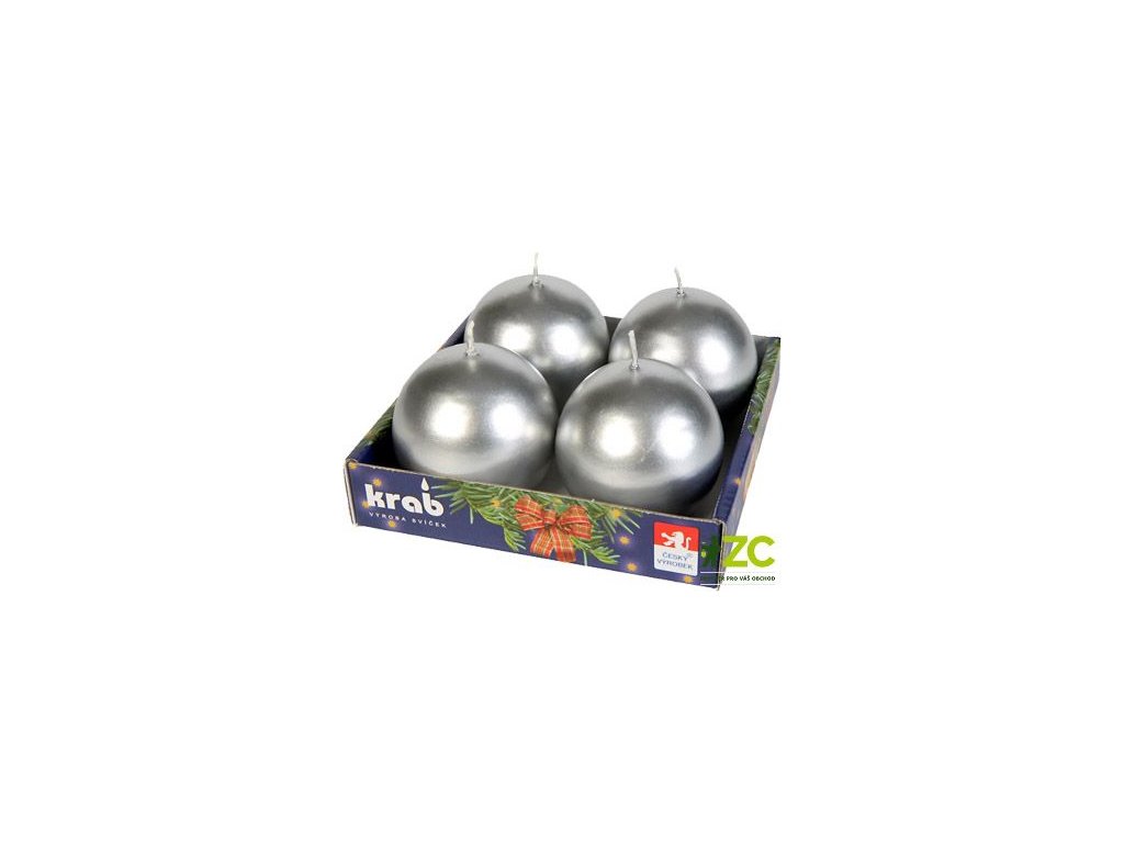Svíčka adventní koule 60 mm - metalická stříbrná (4ks)