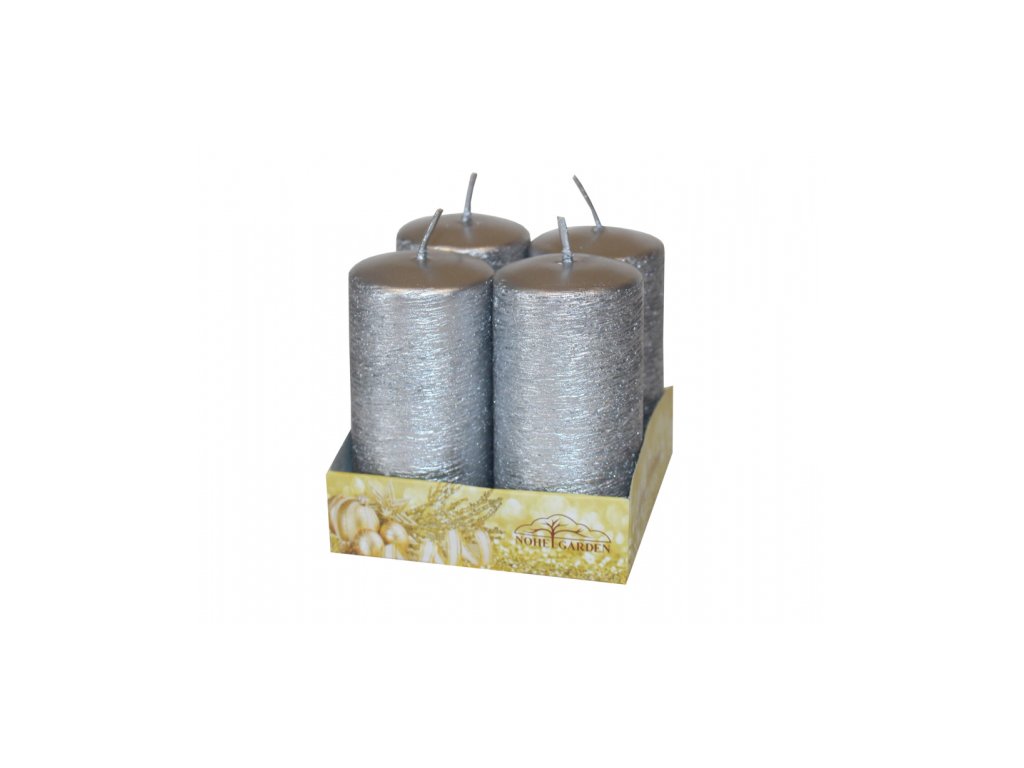 Svíčka adventní TAURUS škrábaná metalická d4x8cm 4ks - stříbrná