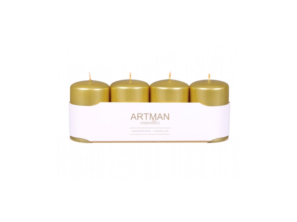 Svíčka adventní VÁLEC metalická d6x10cm 4ks - zlatá