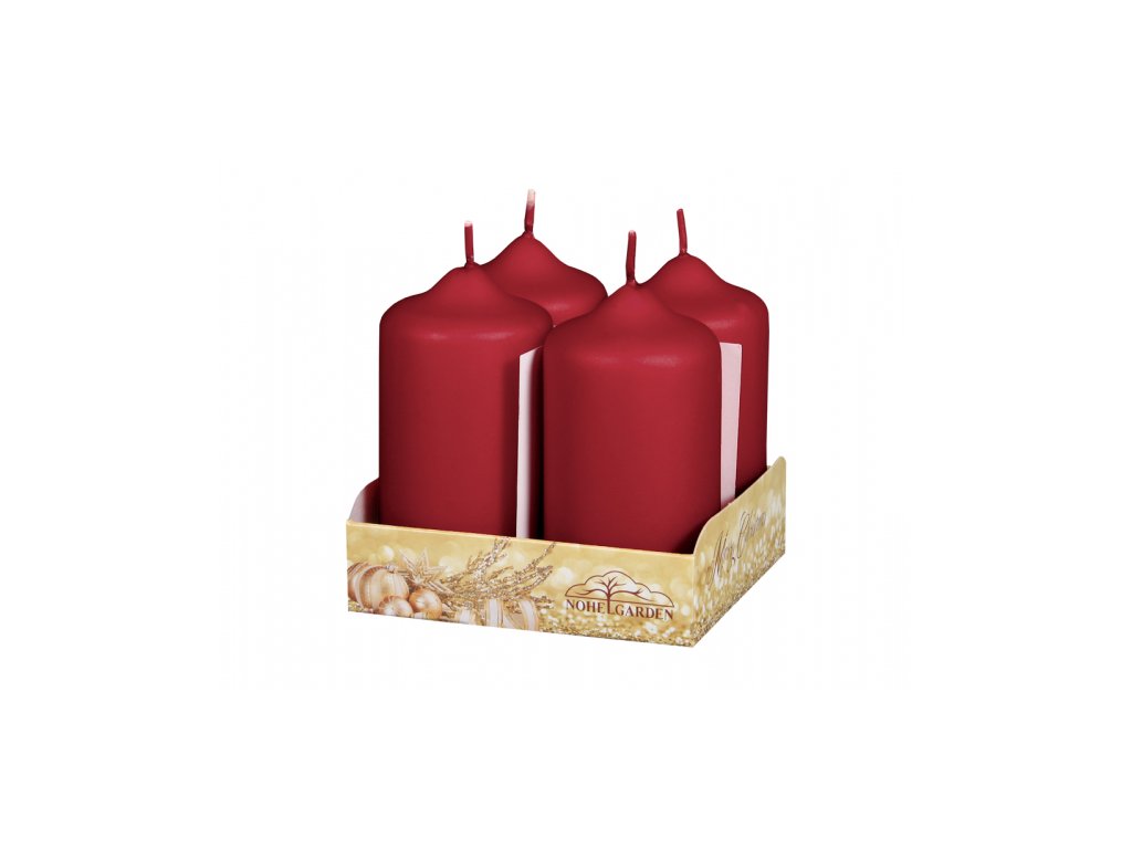 Červená adventní svíčka ve tvaru válce s metalickým matným povrchem. V balení jsou 4 kusy. Průměr: 5 cm, výška: 9 cm.