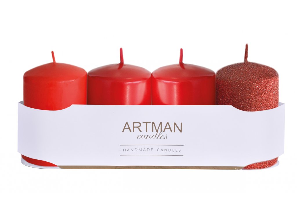 Svíčka adventní VÁLEC mix d6x10cm 4ks - odstíny červené