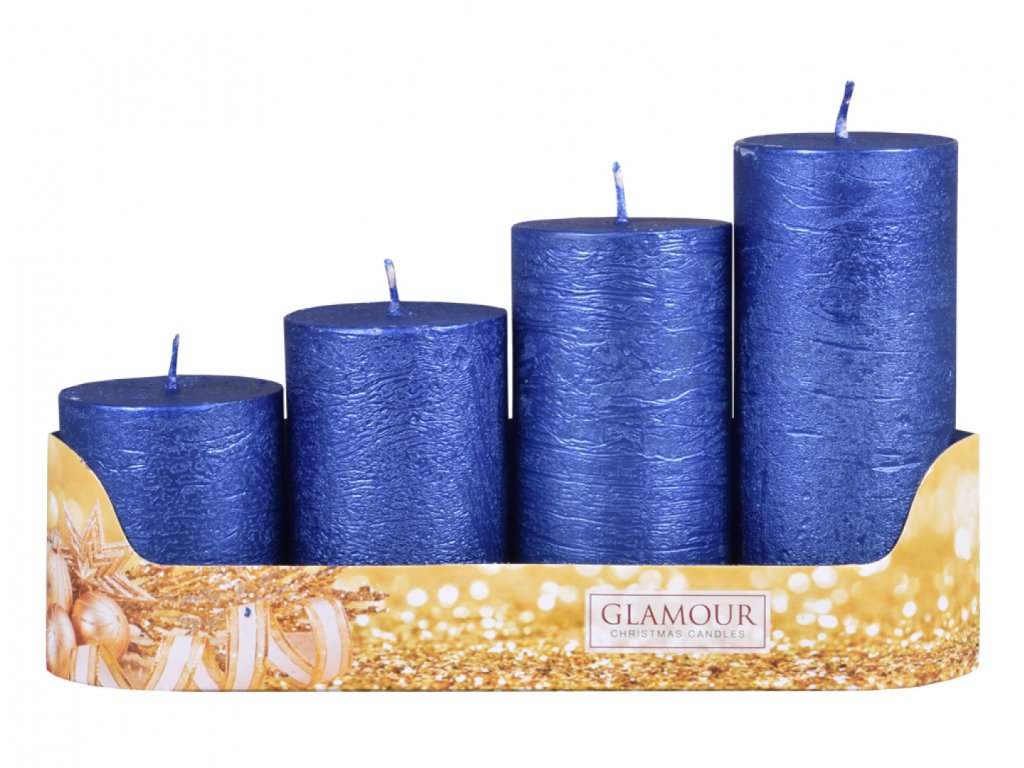Svíčky adventní STUPŇOVITÉ rustik metal - modrá - d5x6/8/10/12cm 4ks