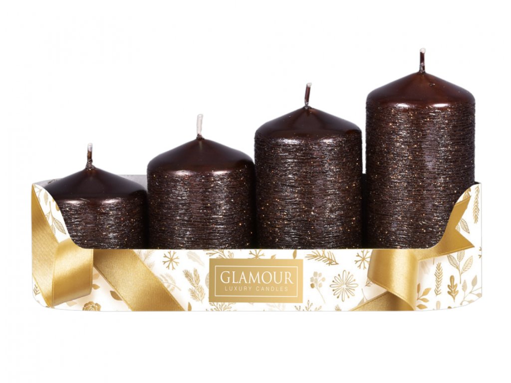 Svíčky adventní STUPŇOVITÉ TAURUS d5x6/7,5/9/10,5cm 4ks - tmavě hnědá