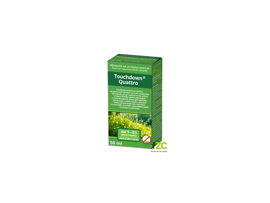 Touchdown Quattro obsahuje účinnou látku glyphosate, která je přijímaná listy. Přípravek působí neselektivně jako listový systematický herbicid proti širokému spektru jednoletých a víceletých plevelů včetně pýru plazivého, pcháče osetu a mléče rolního před setím nebo na strniště. Používá se v ovocných sadech, vinicích na orné i nezemědělské půdě.
