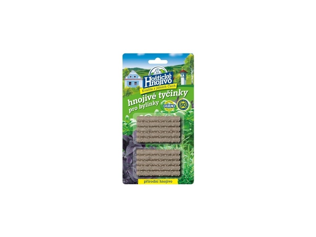 Hoštické tyčinky jsou vhodné pro všechny druhy bylinek - zelené koření, jako jsou majoránka, pažitka, bazalka, máta, libeček, řeřicha, saturejka, dobromysl, rozmarýn, petržel, kopr a další druhy aromatických rostlin. Hnojivové tyčinky obsahují navíc guáno, pocházející z trusu mořských ptáků, které aktivuje půdní mikrofléru a dodává rostlinám potřebné živiny.