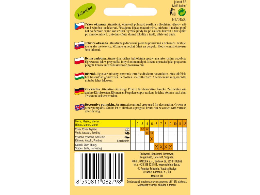 Atraktivní, jednoletá poléhavá rostlina s dlouhými výhony, užívaná zejména na dekoraci. Pěstujeme ji jako ostatní tykve, můžeme ji nechat popínat po pergole či jiné konstrukci. Vyzrálé plody lze po usušení lakovat a tak vydrží po mnoho měsíců. Upřednostňuje slunné lokality a teplé, záhřevné půdy.