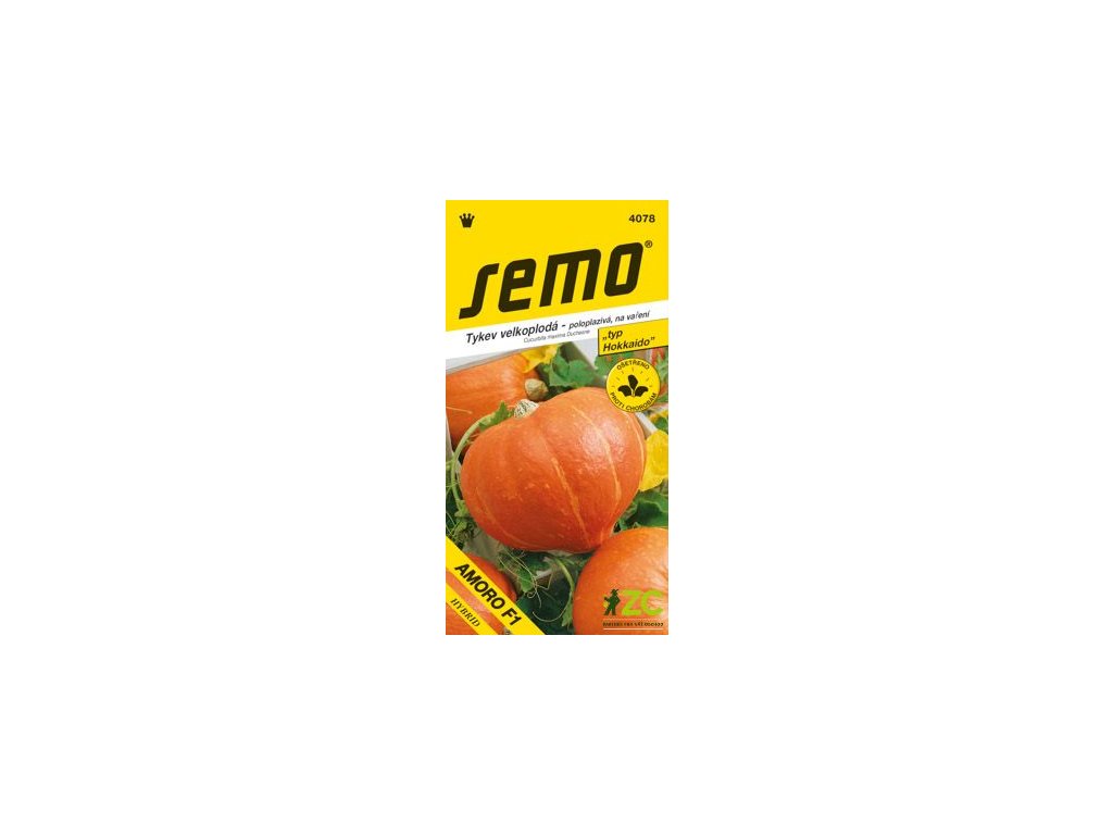Odrůda: AMORO - nová, výnosná odrůda tykve typu HOKKAIDO. Plody jsou ve tvaru srdce (ploše kulovité, mírně zašpičatělé) o hmotnosti 0,8 až 1,3 kg. Pokožka má jasně oranžovou barvu, dužnina je oranžové barvy, jemné chuti a snadno se řeže. Je ideální na polévky. Skladovatelnost je 2-3 měsíce, při optimálních skladovacích podmínkách (sucho a teplota okolo 20oC) až 4 měsíce. Předností této odrůdy je její ranost a především poloplazivý vzrůst. Rostlina tvoří kompaktní keříček, ze kterého později vybíhají prodloužené lodyhy (šlahouny). To umožňuje zvýšit hustotu výsevu a tím dosáhnout lepšího výnosu z dané plochy. Je možné vysévat až 1,5 -2 rostliny na m2.