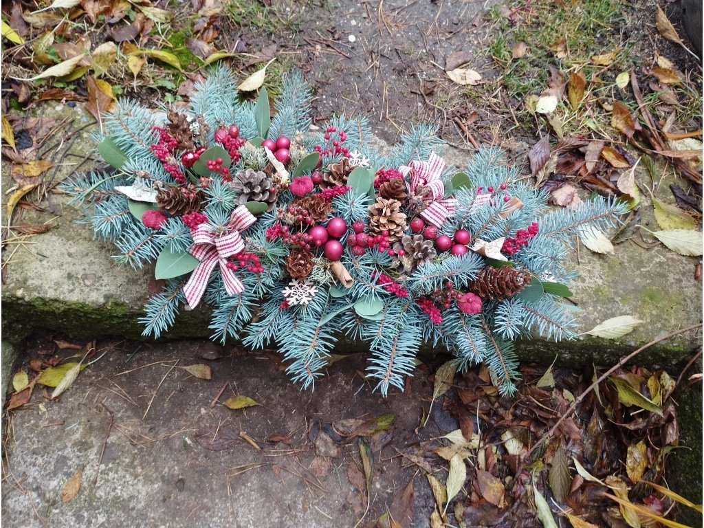 - zdobení: přírodní - drobné šípky, šišky, sušina, slaměné ozdoby, baňky, kuličky glitr