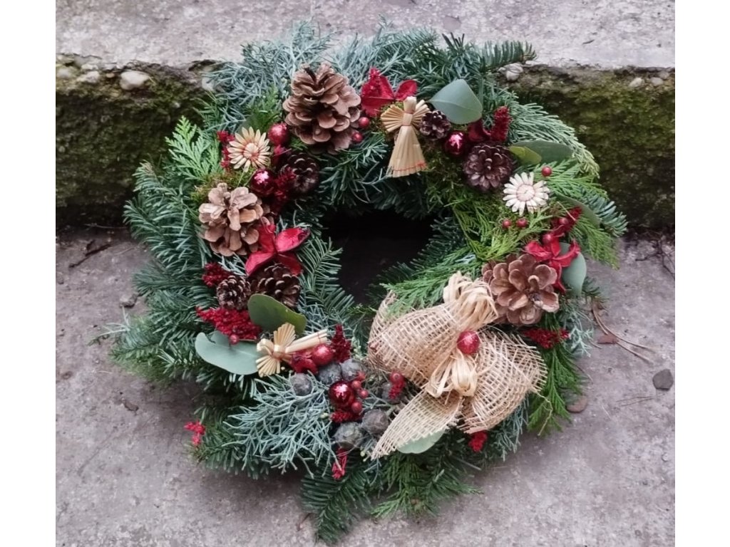 - Adventní věnec k zavěšení na slaměném základu o průměru 20 cm.